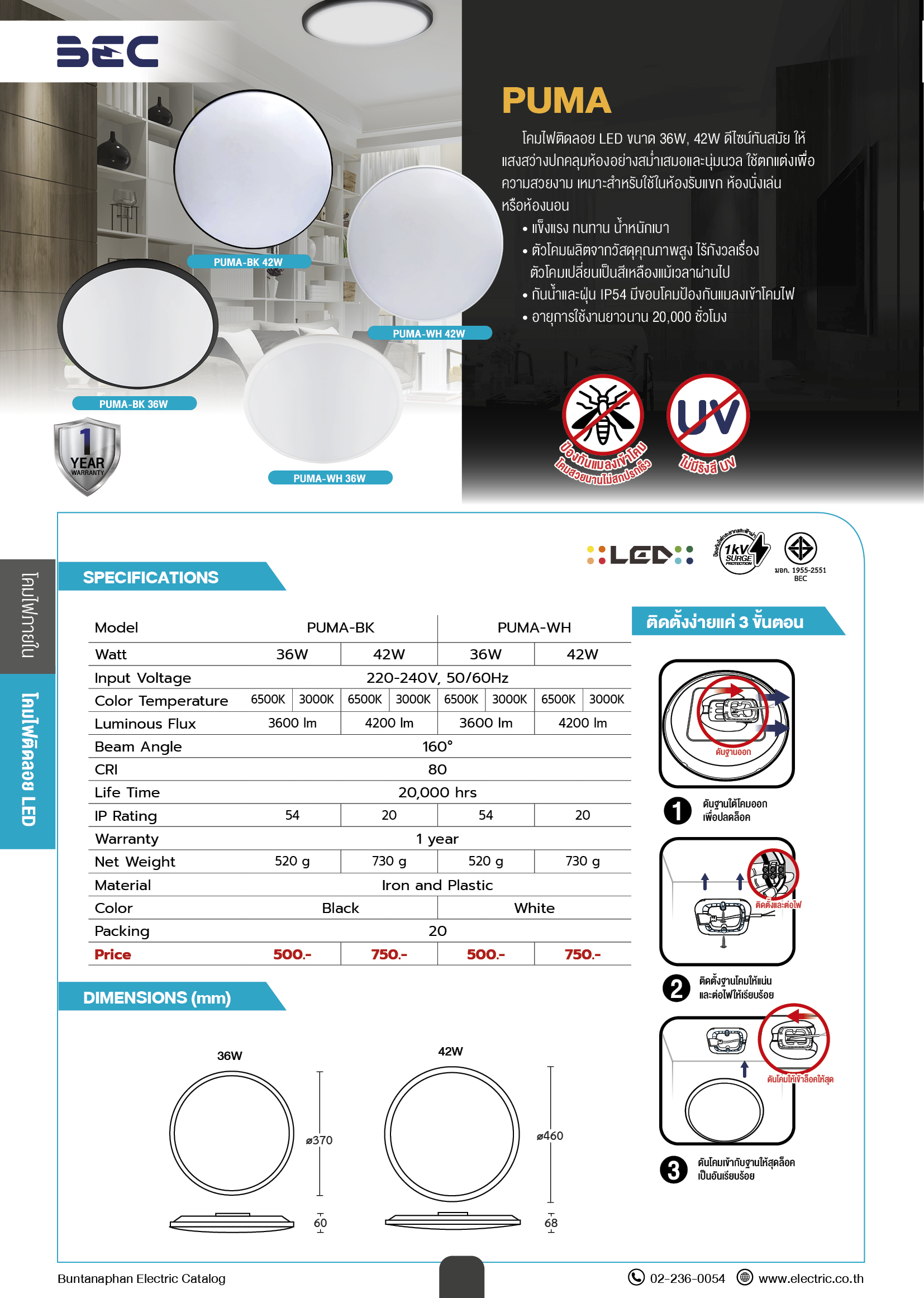 ไฟเพดาน LED BEC PUMA-BK 18 นิ้ว 42 วัตต์ DAYLIGHT สีขาว/ดำ