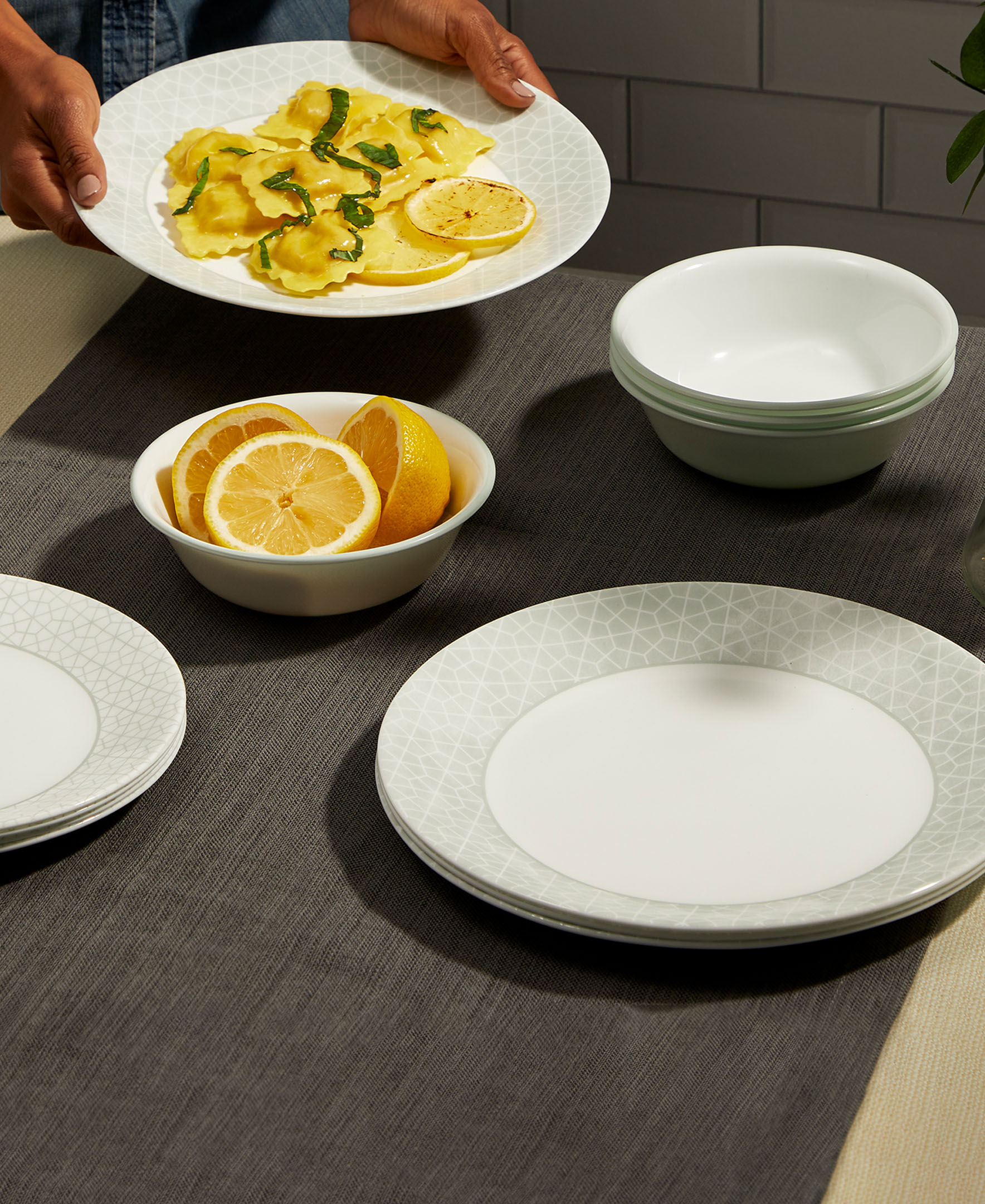 ชุดจานชาม CORELLE KNOX (ชุด 12 ชิ้น)ตอบโจทย์ความสวยงามด้วยคุณภาพที่เหนือชั้น ด้วยชุดจานชาม จาก Corelle ผลิตจากเนื้อแก้ว Vitrelle 3 ชั้น ลิขสิทธิ์เฉพาะที่มีคุณสมบัติพิเศษเรื่องความแข็งแรงคงทน ทำให้จาน Corelle นั้นทนทานต่อการตกกระแทก กะเทาะหรือแตกมากกว่าจานกระเบื้อง จานเซรามิก และจานแก้วอื่นๆ รวมถึงมีน้ำหนักเบากว่า และด้วยคุณสมบัติที่ทนความร้อนสูง, ไม่ดูดสี/กลิ่น และปลอดภัยไร้สารตกค้าง ทำให้ใช้ได้ทั้งกับไมโครเวฟและเครื่องล้างจานอย่างสะดวกสบาย มอบความสวยงามที่ยั่งยืนและความอุ่นใจให้กับการใช้งานในทุกๆ วัน สินค้าภายในชุดประกอบด้วย