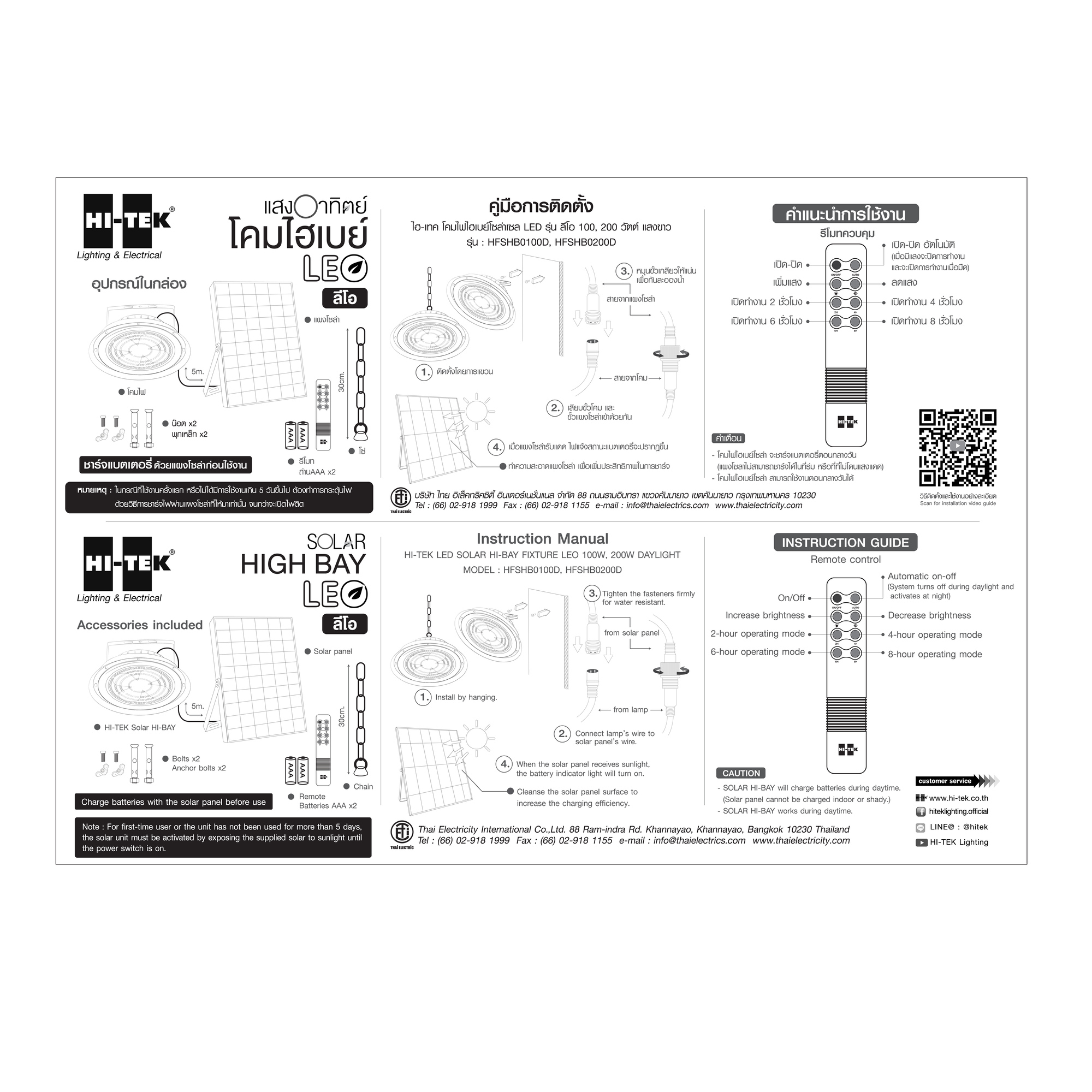 ไฟช่อภายนอก SOLAR HI-TEK LEO 100 วัตต์ DAYLIGHT สีดำสว่างยันเช้าโดยไม่ง้อค่าไฟ ด้วยโคมไฟไฮเบย์ จากแบรนด์ HI-TEK รุ่น LEO พร้อมความยาวโซ่ 30 ซม. นวัตกรรมแสงสว่างรักษ์โลกที่ตอบโจทย์พื้นที่กว้าง มอบความสว่างเต็มประสิทธิภาพด้วยชิป LED คุณภาพสูงที่ส่องผ่านออปติคคอลเลนส์ ช่วยกระจายแสงได้กว้างและทั่วถึง ตัวโคมมีความแข็งแรงทนทานด้วยวัสดุเกรดพรีเมียมพร้อมมาตรฐานกันน้ำกันฝุ่น IP65 ทำงานอัตโนมัติด้วยพลังงานแสงอาทิตย์ผ่านแผง Monocrystalline ประสิทธิภาพสูง ชาร์จไฟได้ไว ใช้งานได้ต่อเนื่องยาวนาน พร้อมอำนวยความสะดวกด้วยรีโมทคอนโทรล ให้คุณควบคุมแสงสว่างได้ดั่งใจและประหยัดพลังงานได้สูงสุด