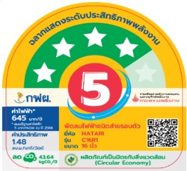 - ขนาด 16 นิ้ว กำลังไฟ 47 วัตต์ ให้ประสิทธิภาพการระบายอากาศที่ดีและประหยัดพลังงาน