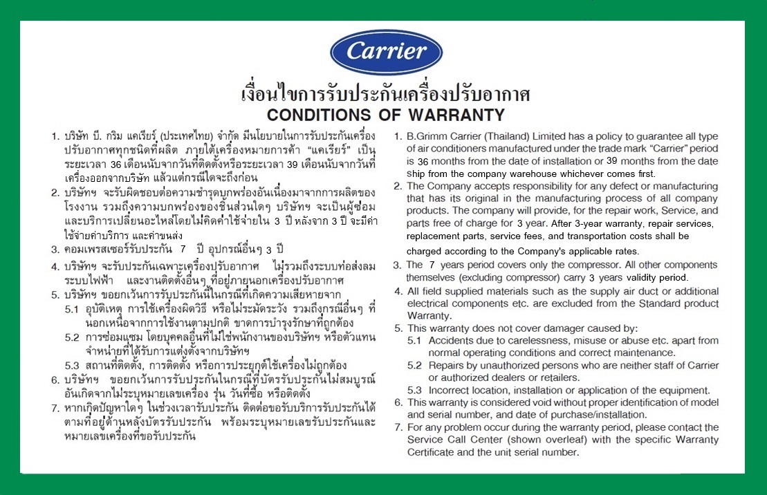 | รับประกันคอมเพรสเซอร์ (ปี) | 7 |