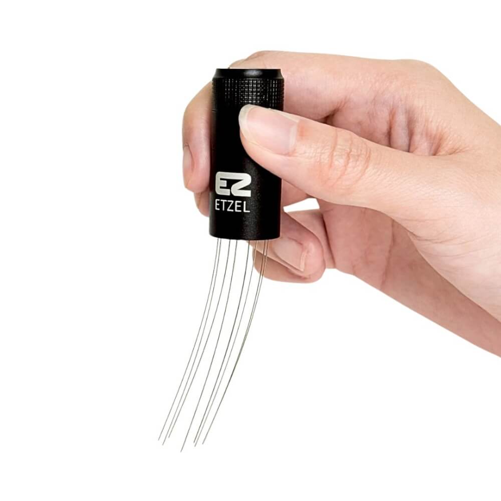 เข็มเกลี่ยผงกาแฟแบบหมุนได้ พร้อมฐานแขวนแม่เหล็ก แบบ 8 เข็ม (ฟรีเข็มสำรอง 8 ชิ้น) อุปกรณ์คู่ใจบาริสต้า ที่ช่วยให้ผงกาแฟกระจายตัวสม่ำเสมอ ป้องกันการจับตัวเป็นก้อน เพื่อการสกัดเอสเพรสโซ่ที่สมบูรณ์แบบทุกแก้ว คุณสมบัติเด่น