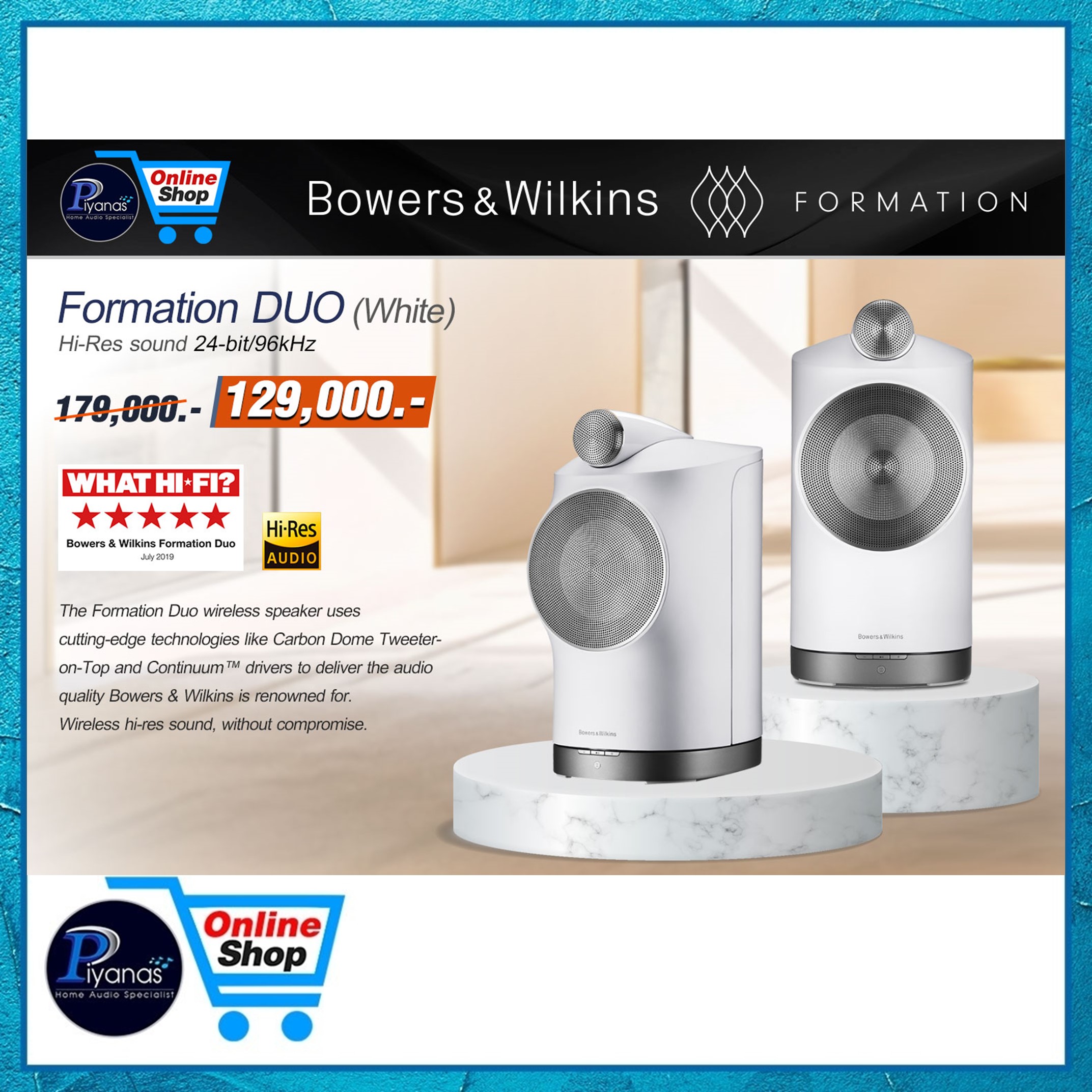 ลำโพงบลูทูธ/ไร้สาย BOWERS&WILKINS : FORMATION DUO (WHITE)BOWERS&WILKINS : FORMATION DUO (WHITE)จุดเด่น (Key Features)
