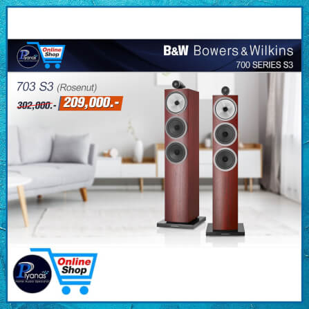 ลำโพงตั้งพื้น BOWERS & WILKINS : 703S3 (ROSENUT)B&W : 703S3 (ROSENUT) Floor Standing Speaker Bowers & Wilkins 703 S3 เป็นลำโพงตั้งพื้นรุ่นใหญ่ของซีรีส์ 700 S3 ที่นำเทคโนโลยีหลักจาก 800 Series Diamond มาพัฒนาให้เหมาะกับการใช้งานในบ้าน ด้วยการออกแบบ Tweeter-on-Top ที่เป็นเอกลักษณ์ พร้อมระบบไดรเวอร์ Continuum™ และ Aerofoil™ ที่ให้เสียงชัดเจน ละเอียด และสมจริงในทุกย่านความถี่ เหมาะสำหรับผู้ที่ต้องการลำโพงตั้งพื้นคุณภาพสูง ทั้งเพื่อการฟังเพลงและระบบโฮมเธียเตอร์ที่ให้พลังเสียงครบทุกมิติ จุดเด่นของสินค้า