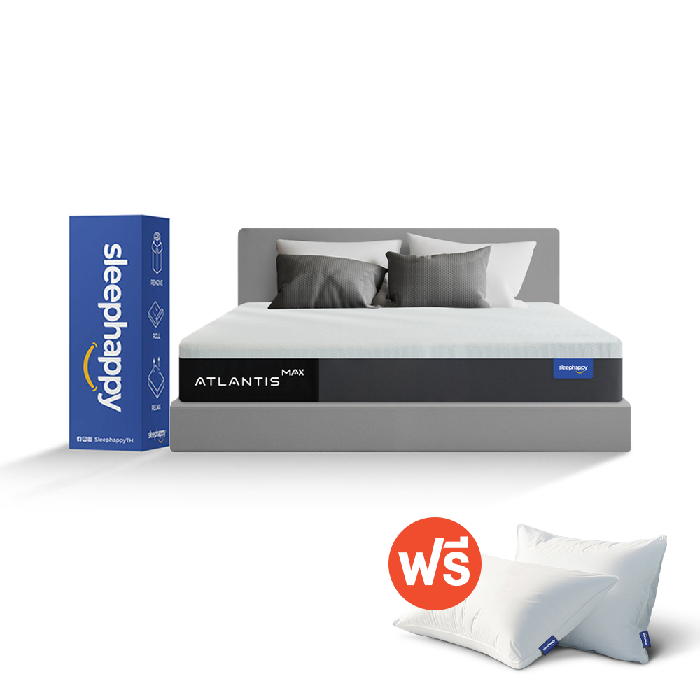 ที่นอน 5 ฟุต SLEEPHAPPY ATLANTIS MAXAtlantis MAX SleepHappy ที่นอนยางพาราแท้ 100% รุ่น Atlantis MAX ผ้าหุ้ม Dynamic Cooling MAX Fabric เสริมด้วย Pocket Spring 7 Zone ยกระดับทุกการนอน ให้สุขขึ้นกว่าเดิม กับที่นอนคุณภาพรุ่นใหม่ล่าสุด Atlantis MAX ที่รักษาสมดุลและรองรับทุกมิติของการนอน ด้วยนวัตกรรมไดนามิคคูลลิ่งแม็กซ์ ช่วยระบายความร้อน ปรับความเย็นให้อุณหภูมิคงที่ นอนสบายทั้งคืน ไม่ตื่นกลางคัน ผสานวัสดุคุณภาพถึง 10 ชั้น เพื่อสุขภาพการนอนที่แท้จริง หนา 10.5 นิ้ว มีให้เลือก 3 ขนาด (3.5 ฟุต, 5 ฟุต, 6 ฟุต) ▶ 3.5 ฟุต ขนาด 105x198x27 ซม. ▶ 5 ฟุต ขนาด 150x198x27 ซม. ▶ 6 ฟุต ขนาด 180x198x27 ซม. ระดับความนุ่มแน่น ของที่นอน อยู่ในระดับที่ 3 (นุ่มแน่น) จาก 5 ระดับ