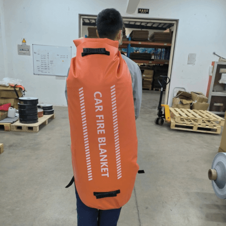 ในการใช้ผ้าดับไฟสำหรับรถ ให้ดึงผ้าจากกระเป๋าแล้วกางออกให้เต็มที่ จากนั้นให้คนสองคนจับที่ห่วงด้านสั้นของผ้าและยกขึ้นอย่างรวดเร็วเพื่อคลุมรถที่กำลังไฟไหม้อย่างมิดชิด พร้อมห่อมุมของรถให้แน่นและทิ้งผ้าคลุมไว้จนไฟดับสนิท.
