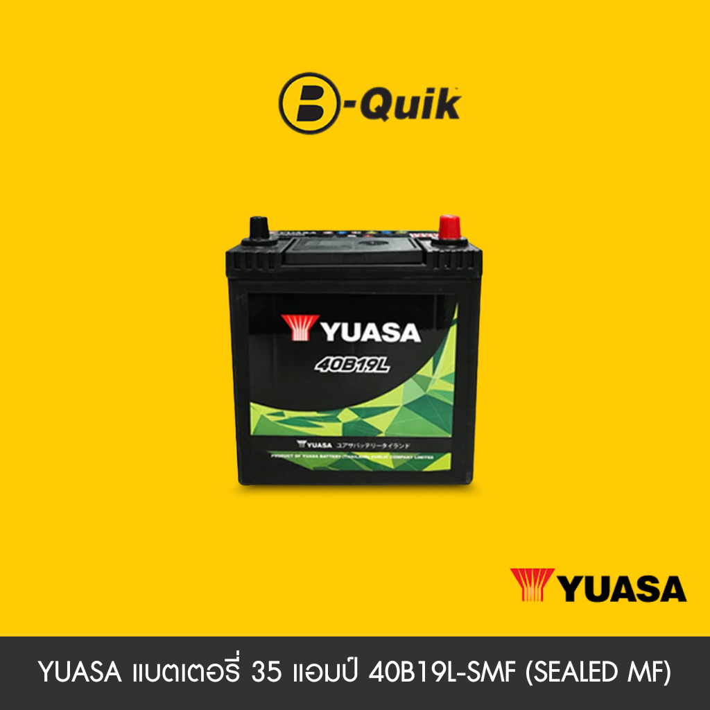 แบตเตอรี่ 35 แอมป์ YUASA (ขั้วสลับ) 40B19L-SMF (SEALED MF) ไม่เทิร์นแบตเตอรี่แบตเตอรี่ 35 แอมป์ YUASA (ขั้วสลับ) 40B19L-SMF (SEALED MF) ไม่เทิร์นแบตเตอรี่ สำหรับรถเก๋งเป็นชนิดที่ไม่มีรูเติมน้ำกลั่นเลย. เทคโนโลยี Sead lid แบบฝาปิดสนิทออกแบบเพื่อลดการระเหยน้ำกรด ฝาปิดเป็นระบบน้ำไหลวนกลับทำให้ไอระเหยไหลย้อนกลับสู่ที่เดิม. ระบบนี้ลดการสูญเสียน้ำได้เป็นอย่างดีเยี่ยม. ผู้ใช้ไม่ต้องดูแลน้ำกลั่นเลยตลอดอายุการใช้งาน