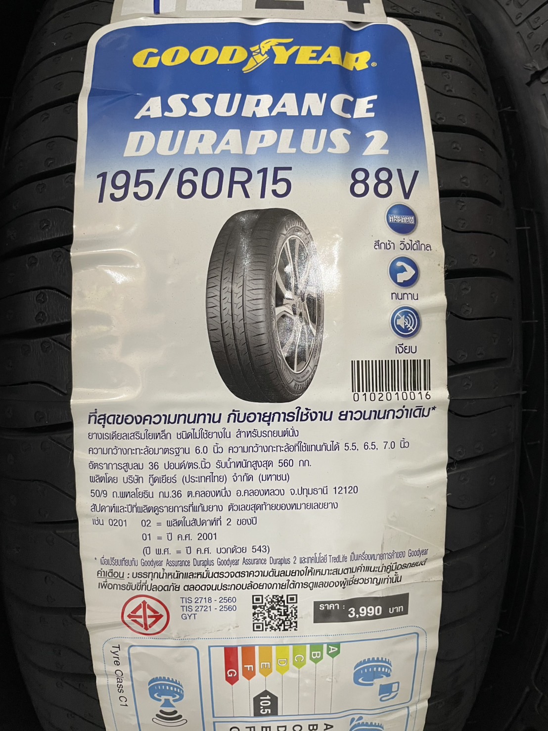 ยางรถยนต์ GOODYEAR รุ่น ASSURANCE DURAPLUS 2 ขนาด 195/60R15 จำนวน 4 เส้น