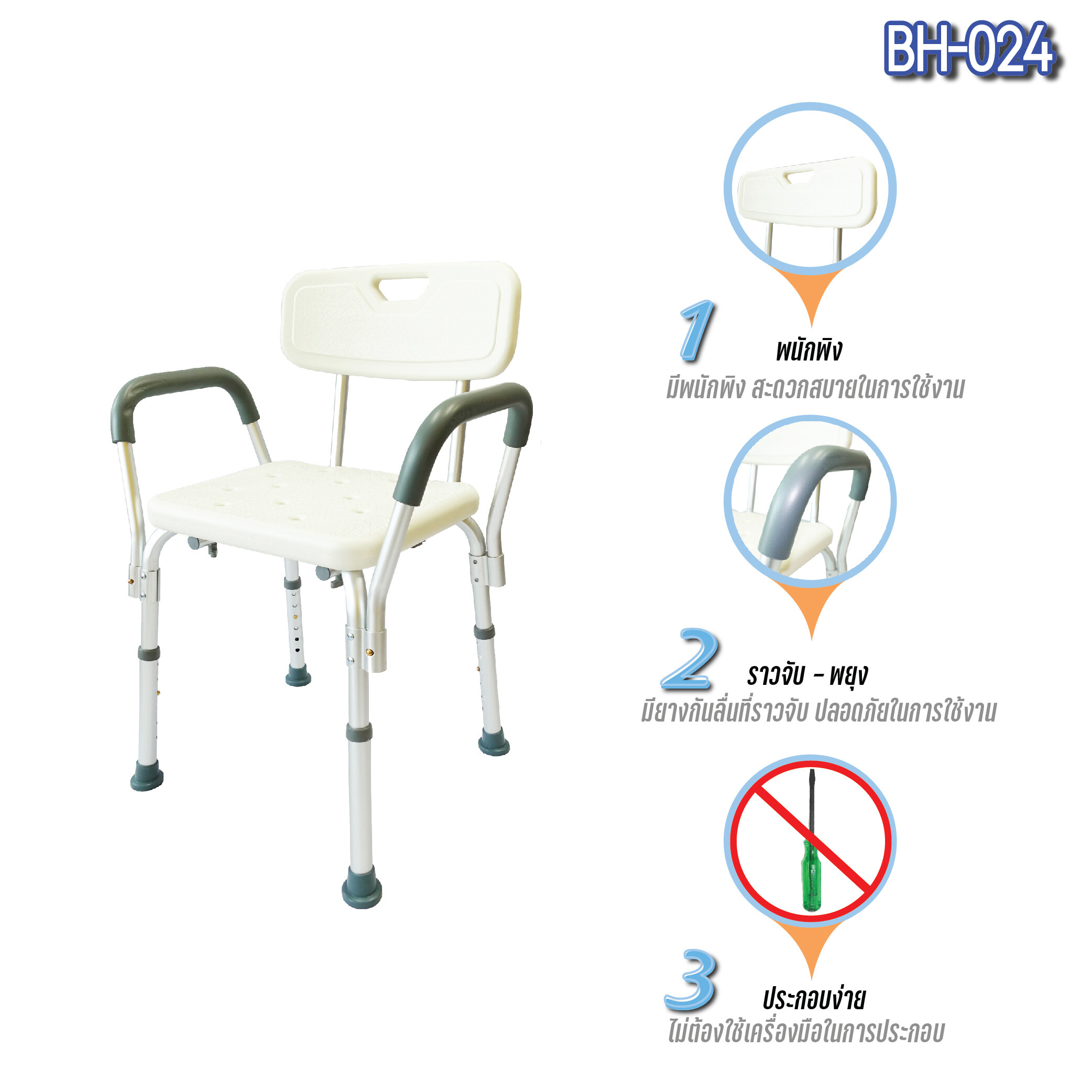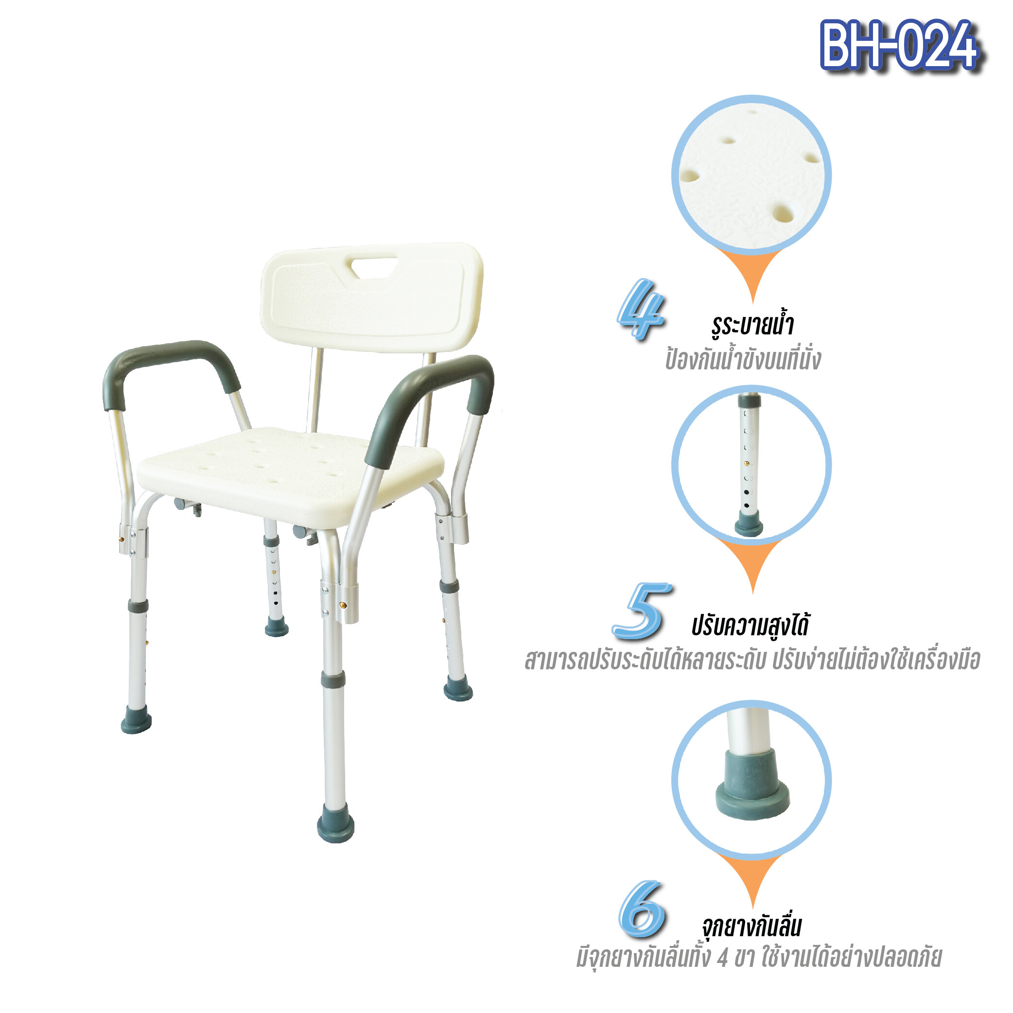 เก้าอี้นั่งอาบน้ำ Elderlife มีพนักพิง พร้อมมือจับพยุงตัว รุ่น BH-024 เก้าอี้นั่งอาบน้ำ Elderlife มีคุณสมบัติพิเศษที่มีประโยชน์ โดยมาพร้อมกับพนักพิงที่ถูกออกแบบอย่างเหมาะสมเพื่อให้สามารถนั่งอยู่บนเก้าอี้ได้อย่างสบายสบายใจ พนักพิงนี้ช่วยให้มีความมั่นคงและปลอดภัยขณะที่นั่งอาบน้ำอยู่