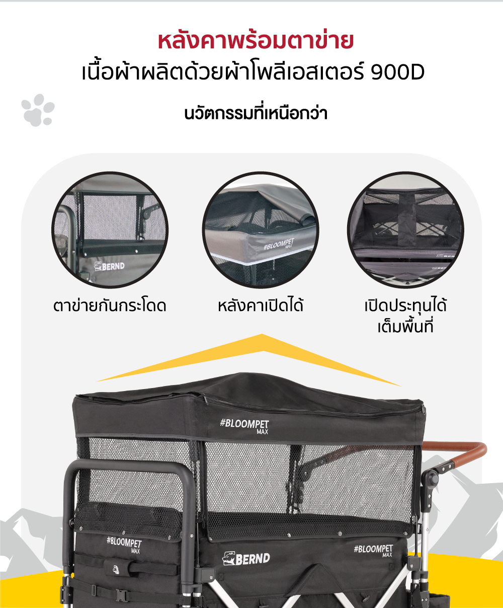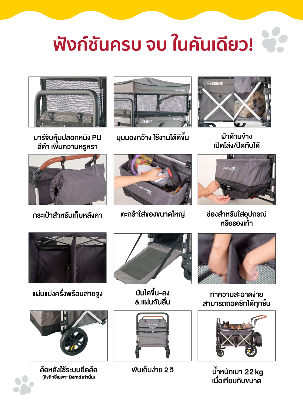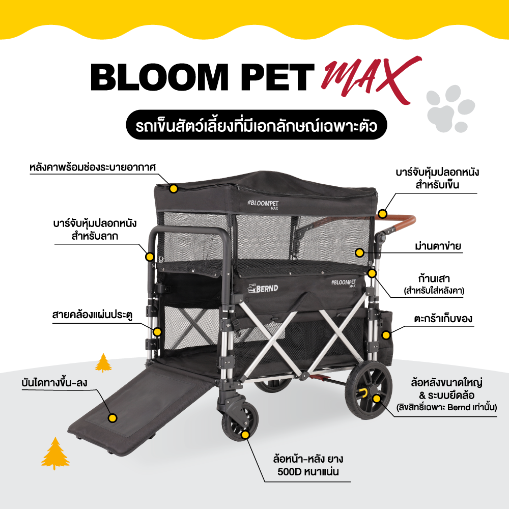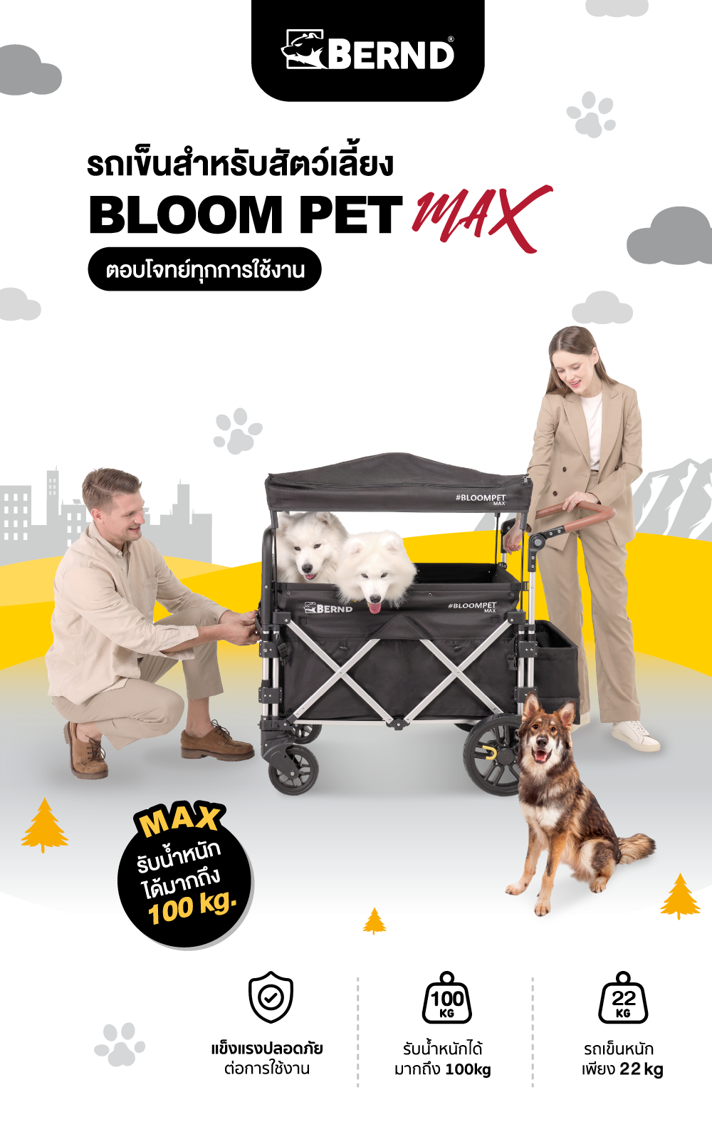 รถเข็นสัตว์เลี้ยง BERND BLOOM PET MAX สีเทา🔰 𝗕𝗲𝗿𝗻𝗱 รุ่น 𝗕𝗹𝗼𝗼𝗺 𝗣𝗲𝘁 𝗠𝗮𝘅 รถเข็นสำหรับสัตว์เลี้ยง 🐶🐈 รับน้ำหนักได้สูงสุด 100 kg.