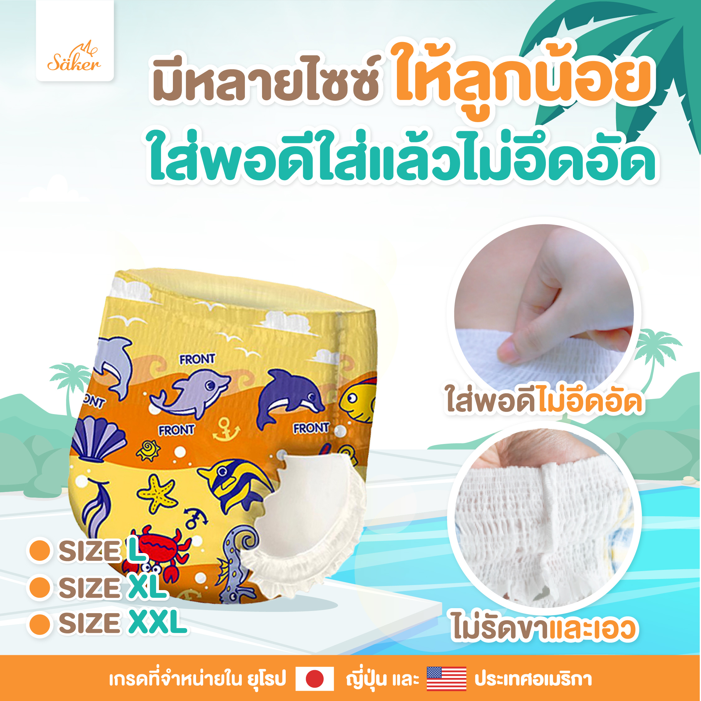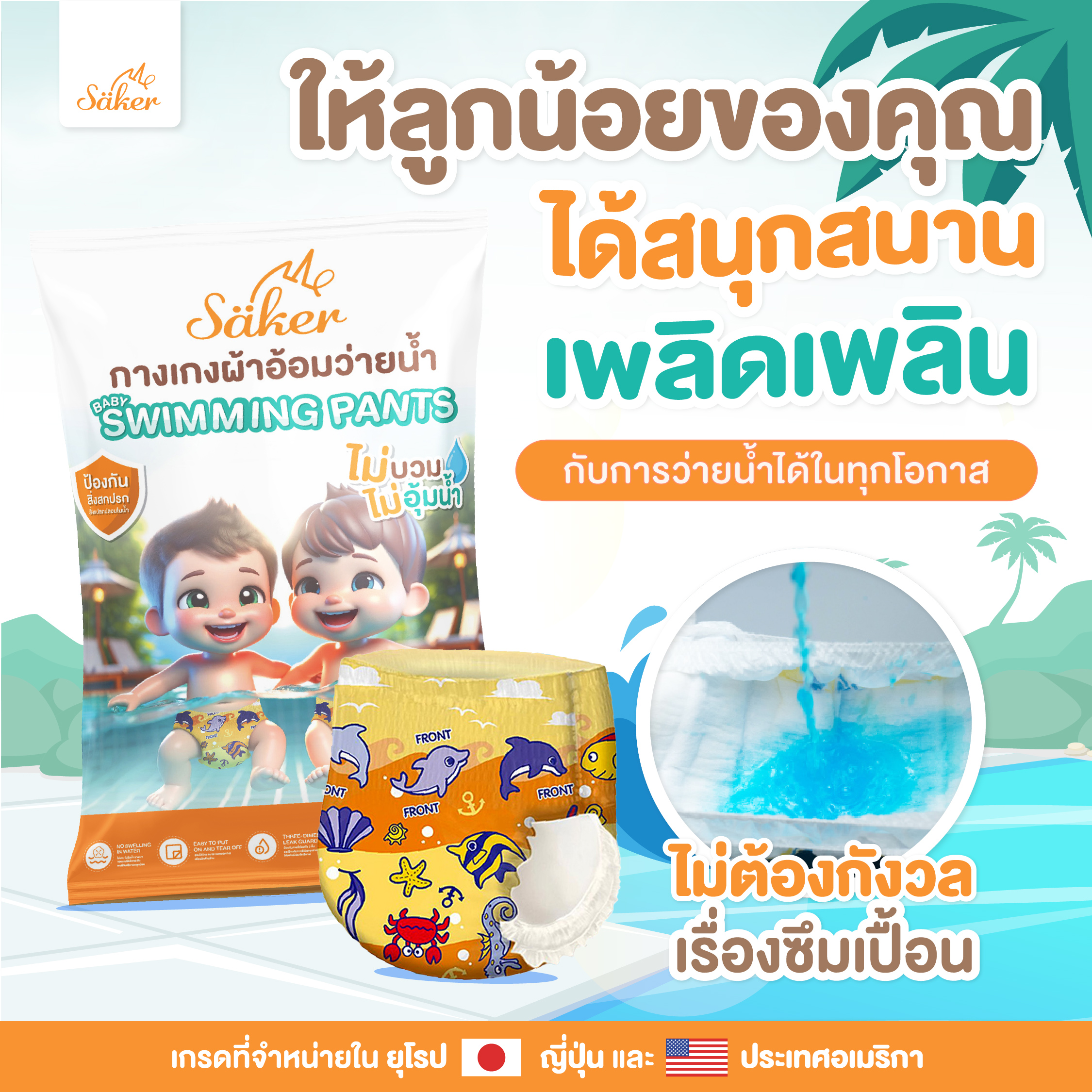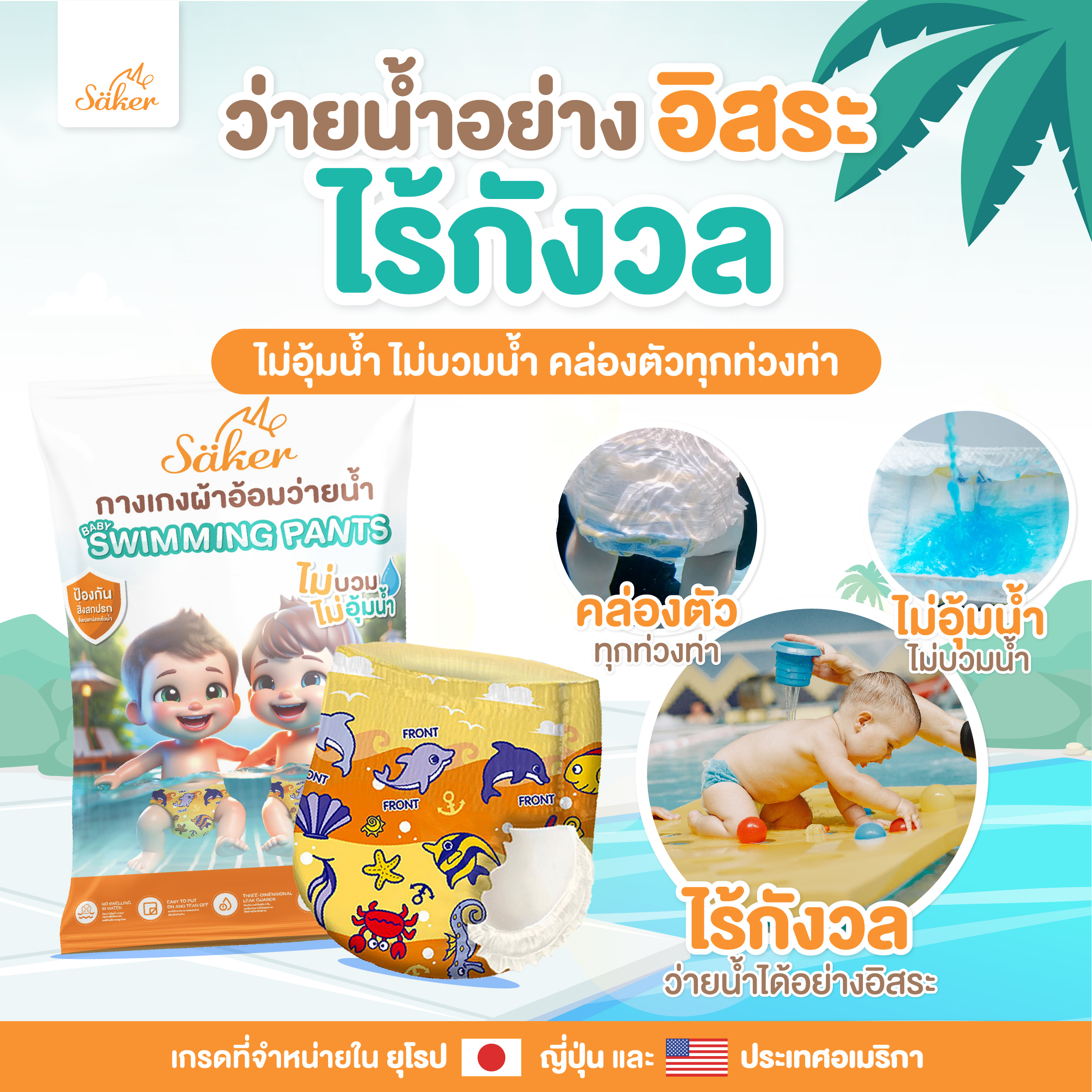 - กางเกงผ้าอ้อมว่ายน้ำ ให้ลูกน้อยเล่นน้ำได้อย่างอิสระ ซึบซับน้ำได้ดี ไม่อุ้มน้ำ คล่องตัวทุกท่วงท่า