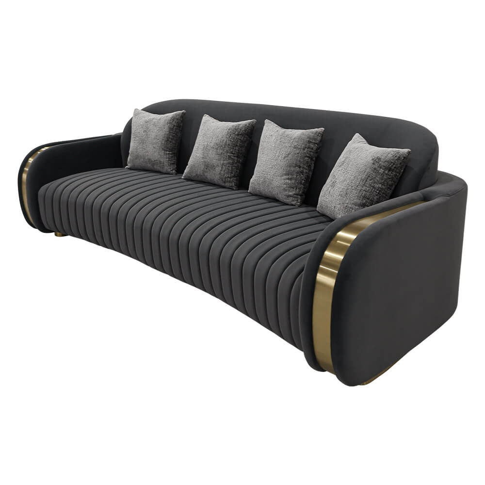 | สีสินค้า | โซฟาสีเทาเข้มและหมอนสีเทา / แขนและขาสีทอง |