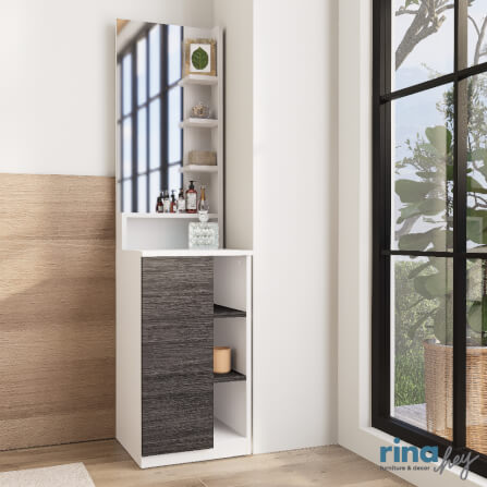 โต๊ะเครื่องแป้ง RINA HEY รุ่น KAMU/40 สีขาวโต๊ะเครื่องแป้งพร้อมกระจก รุ่น : KAMU/40 วัสดุ :Particle Board ปิดผิวเมลามีน/กระจก ขนาด :W40 x D40 x H160 cm สี : ขาว/เทา ข้อมูลเพิ่มเติม : • ทำจากไม้ Particle Board ปิดผิวเมลามีนชั้นดี *เฉดสีที่เห็นอาจแตกต่างจากเฉดสีของสินค้าจริง