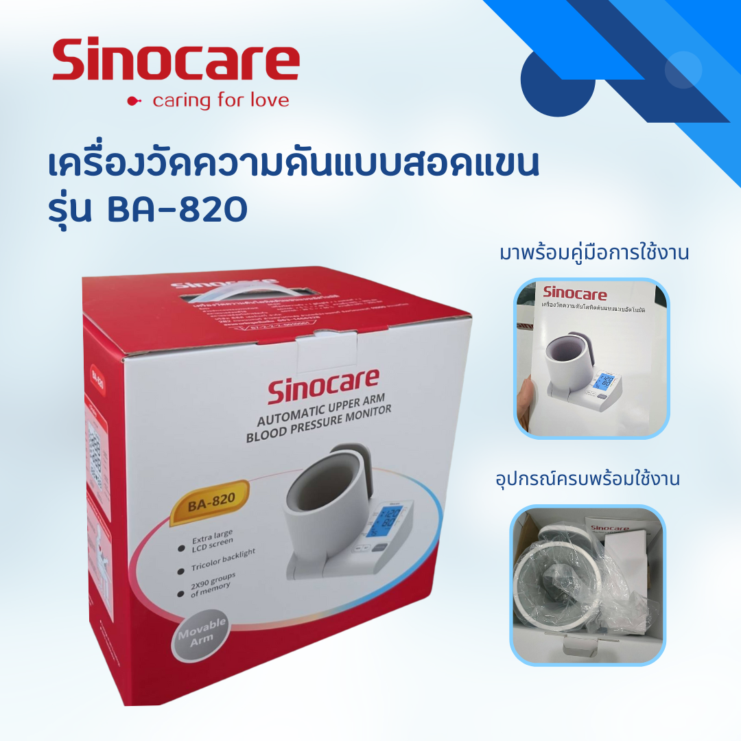 เครื่องวัดความดันดิจิตอล แบบสอดแขน SINOCARE รุ่น BA-820 0040101003012Sinocare รุ่น BA-820 เครื่องวัดความดันต้นแขน ดิจิตอล รุ่นสอดแขน ใช้งานง่าย หน้าจอใหญ่ Blood Pressure Monitor