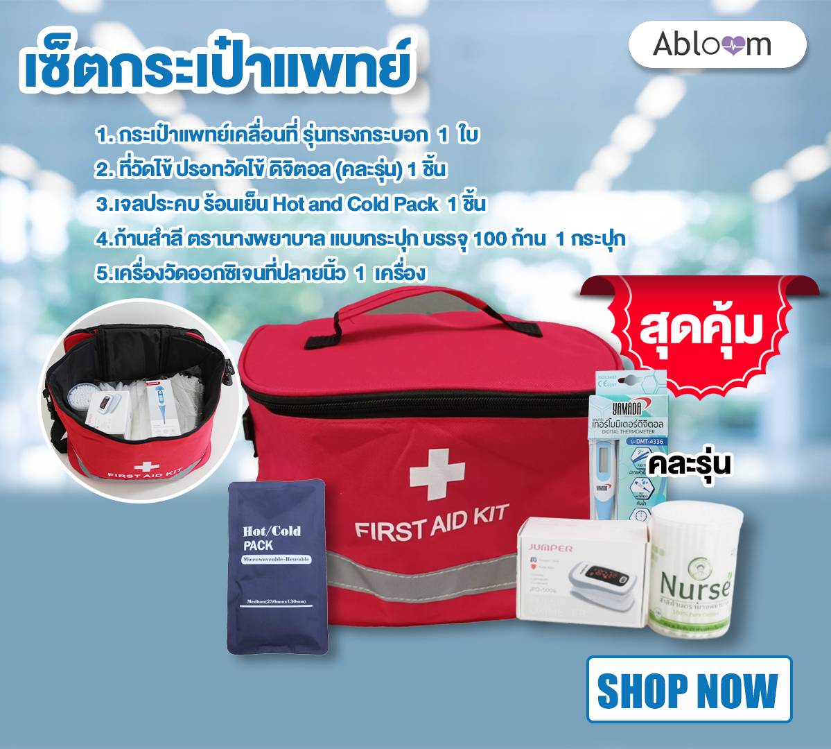 🧰 ภายในเซ็ตกระเป๋าประกอบด้วย: กระเป๋าแพทย์ทรงกระบอก 1 ใบ และอุปกรณ์ตามด้านล่างนี้ 🌡️ ที่วัดไข้ระบบดิจิตอล (คละรุ่น) จำนวน 1 ชิ้น 🎓 เจลประคบ ร้อนเย็น 1 ชิ้น 🧴 ก้านสำลีบรรจุกระปุก ตรานางพยาบาล 100 ก้าน จำนวน 1 กระปุก 💓 เครื่องวัดออกซิเจนปลายนิ้ว Jumper จำนวน 1 เครื่อง