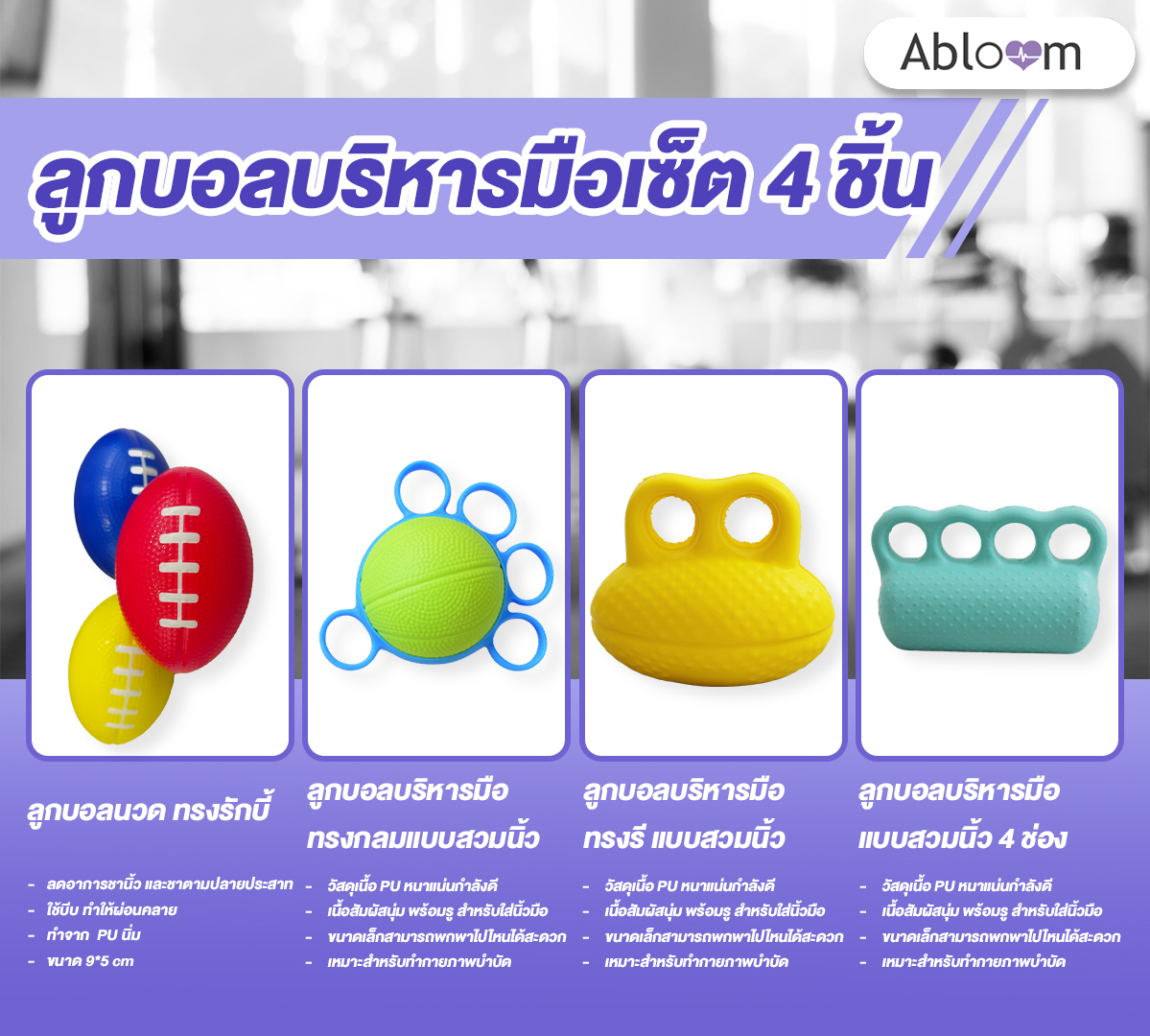 เซ็ตอุปกรณ์บริหารมือ ABLOOM แพ็ค 4 ชิ้น