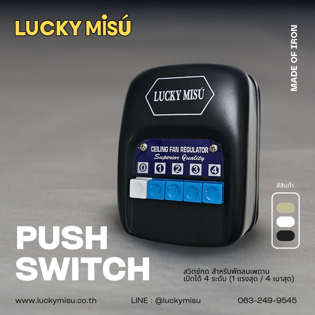 พัดลมติดเพดาน ขนาด 36 นิ้ว ลัคกี้มิตซู รุ่น LM36 สีดำ (รุ่นลมแรง ปรับความเย็น 4 ระดับ)มอบแรงลมเย็นภายในที่พักอาศัยด้วยพัดลมติดเพดาน จาก LUCKY MISU ใบพัดผลิตจากเหล็กขนาด 36 นิ้ว สามารถกระจายลมได้แรงเต็มพลังอย่างสม่ำเสมอทุกครั้งที่ใช้งานด้วยความเร็วสูงสุด 340 รอบต่อนาที ปรับความแรงลมได้ 4 ระดับตามต้องการ อีกทั้งยังเข้ากับการตกแต่งห้องได้หลากหลายสไตล์ ช่วยเพิ่มเสน่ห์ให้บ้านดูมีความทันสมัย ตอบสนองทุกการใช้งานได้อย่างลงตัว