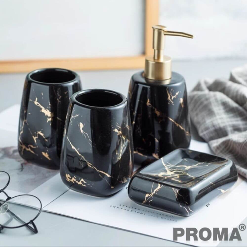 อุปกรณ์ห้องน้ำเซรามิกชุด 5 ชิ้น ลายหินอ่อน PROMA-WS09 สีดำ