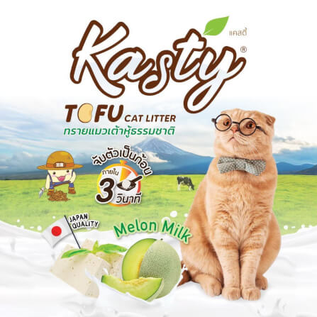 ทรายแมวเต้าหู้ kasty กลิ่นนมเมล่อน ขนาด 10 ลิตร