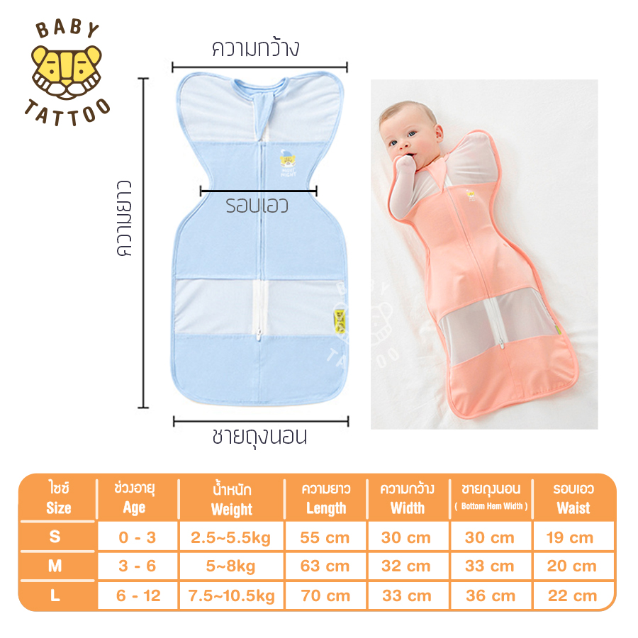 • BABY TATTOO ถุงนอนห่อตัวแบบระบายอากาศ สำหรับเด็ก 0-12 เดือน
