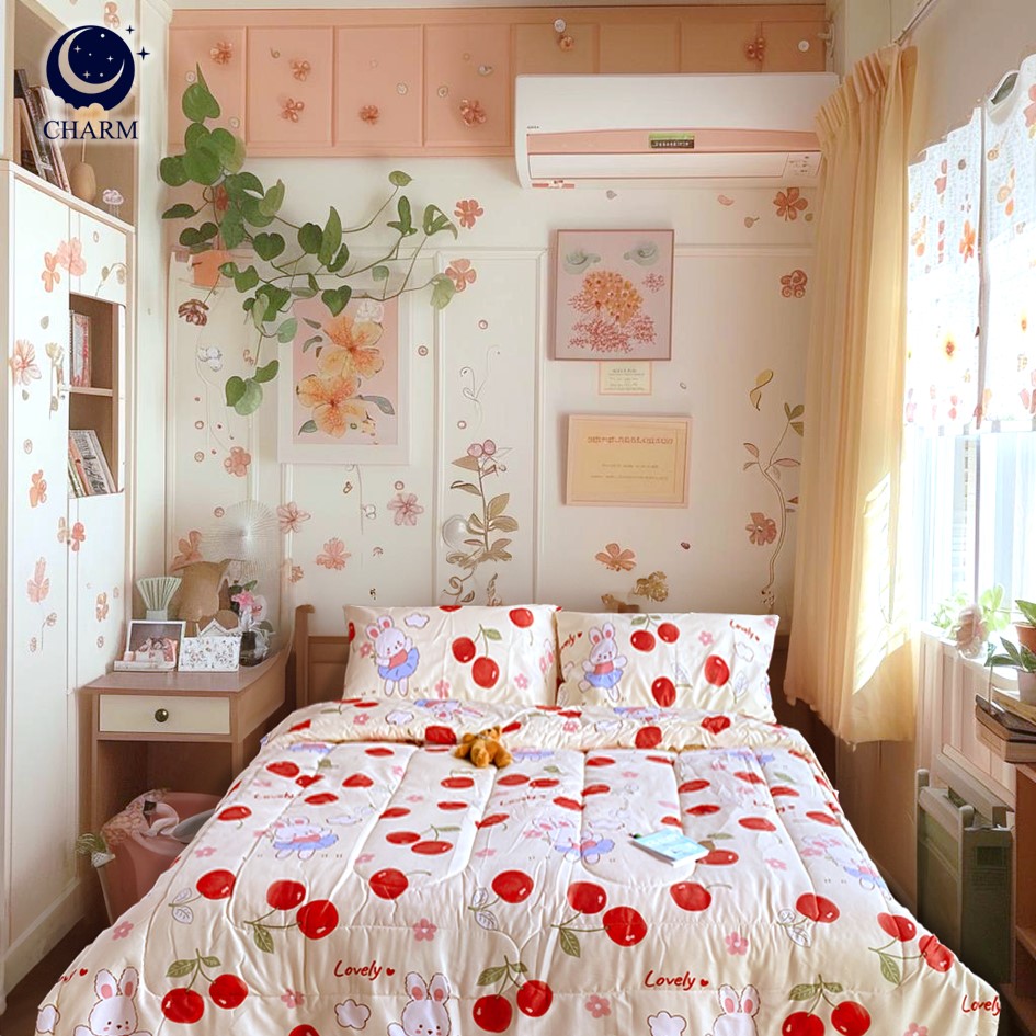 CHARM ชุดผ้าปูที่นอน + ผ้านวม 3.5 ฟุต 3 ชิ้น ลาย CHERRY BLOOM คอลเลคชั่น DREAMYเติมเต็มความสุขและความสดใสให้ห้องนอน ด้วย Charm Dreamy Collection Bedding Set ลวดลายการ์ตูนน่ารัก ช่วยเพิ่มสีสันและบรรยากาศสดใส พร้อมมอบความนุ่มสบายและการระบายอากาศที่ดี ให้คุณนอนหลับพักผ่อนได้เต็มที่ทุกคืน อ่อนโยนต่อผิว ป้องกันไรฝุ่น และทนทาน ใช้งานได้ยาวนานสำหรับทุกคนในครอบครัว คุณสมบัติ