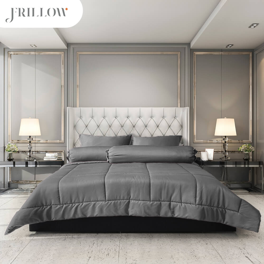 ชุดผ้าปูที่นอน 3.5ฟุต 4 ชิ้น FRILLOW สี เทาเข้ม 720TC Cotton Silk สี เทาเข้มFrillow ชุดผ้าปูที่นอน Luxury สีพื้น พร้อมผ้านวม