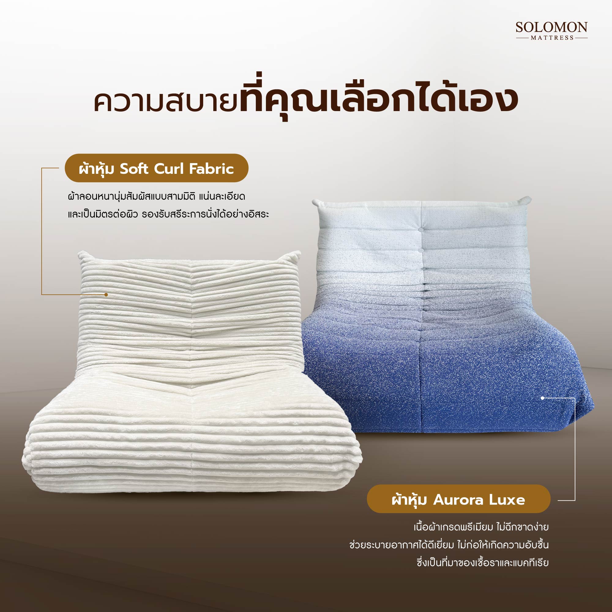 - ผ้าหุ้ม Soft Curl Fabric = ผ้าลอนหนานุ่มสัมผัสแบบสามมิติ แน่นละเอียด และเป็นมิตรต่อผิว