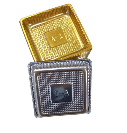ถาดรองขนมพลาสติกทรงสี่เหลี่ยม KCW PK0084 แพ็ค 200 ชิ้น สีทอง
