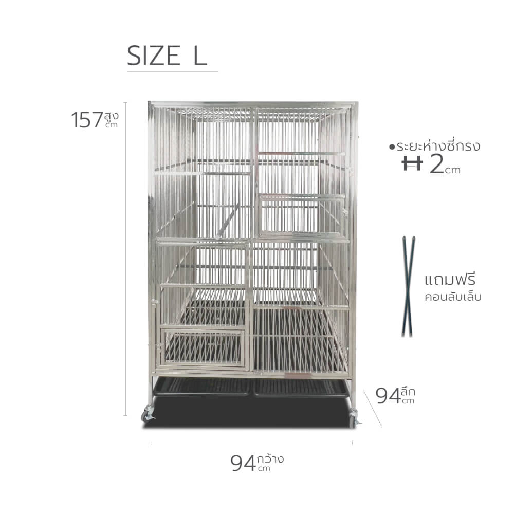 กรงนกสแตนเลส PAWRADISE SIZE L ขนาด : 94 X 94 X 157 CM.กรงนกสแตนเลส Size L ขนาด : กว้าง x ลึก x สูง Size L ขนาด : 94 x 94 x 157 cm.