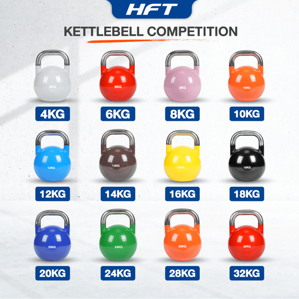 คุณสมบัติเด่นของ Kettlebell Competition Grade -วัสดุคุณภาพสูง: Kettlebell เกรดการแข่งขันผลิตจากเหล็กหล่อเกรดพรีเมียมที่ผ่านการตรวจสอบคุณภาพอย่างละเอียด เพื่อให้มั่นใจในความแข็งแรงและทนทาน ไม่แตกร้าวง่าย แม้ใช้งานหนักในระยะยาว -ขนาดมาตรฐานสากล: ดัมเบลหูหิ้วรุ่นนี้มีขนาดและน้ำหนักที่เป็นไปตามมาตรฐานการแข่งขันสากล (Competition Standard) โดยทุกน้ำหนักจะมีขนาดเท่ากัน ช่วยให้การจับถือและการเคลื่อนไหวมีความสม่ำเสมอ ลดความเสี่ยงต่อการบาดเจ็บ -การออกแบบที่เหมาะสมกับทุกท่วงท่า: ด้ามจับของ Kettlebell มีความหนาและโค้งมนพอดี ช่วยให้จับได้ถนัดมือ ไม่ลื่นหลุดแม้เหงื่อออกมาก นอกจากนี้ยังเหมาะกับการทำท่าฝึกหลากหลาย เช่น Kettlebell Swing, Turkish Get-Up, Clean and Press และ Snatch -สีสันแยกน้ำหนักชัดเจน: ตัว Kettlebell ถูกออกแบบด้วยสีสันที่แตกต่างตามน้ำหนักแต่ละระดับ เพื่อความสะดวกในการเลือกใช้งาน โดยสีที่ใช้เป็นแบบ Non-Toxic และไม่หลุดลอกง่าย ฐานมั่นคง: พื้นฐานของดัมเบลหูหิ้วมีความเรียบและมั่นคง ทำให้วางบนพื้นได้อย่างปลอดภัย ไม่โยกหรือเอียง