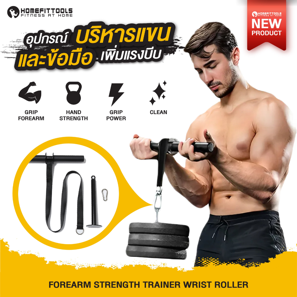อุปกรณ์บริหารข้อมือ HOMEFITTOOLS โฟร์อาร์มการใช้ Forearm Strength เครื่องฝึกกำลังแขน Trainer Wrist Roller อย่างสม่ำเสมอจะช่วยพัฒนาความแข็งแรงของแขนและมือได้อย่างมีประสิทธิภาพ เหมาะสำหรับนักกีฬา นักยกน้ำหนัก หรือผู้ที่ต้องการเสริมสร้างความแข็งแรงของกล้ามเนื้อส่วนนี้โดยเฉพาะ