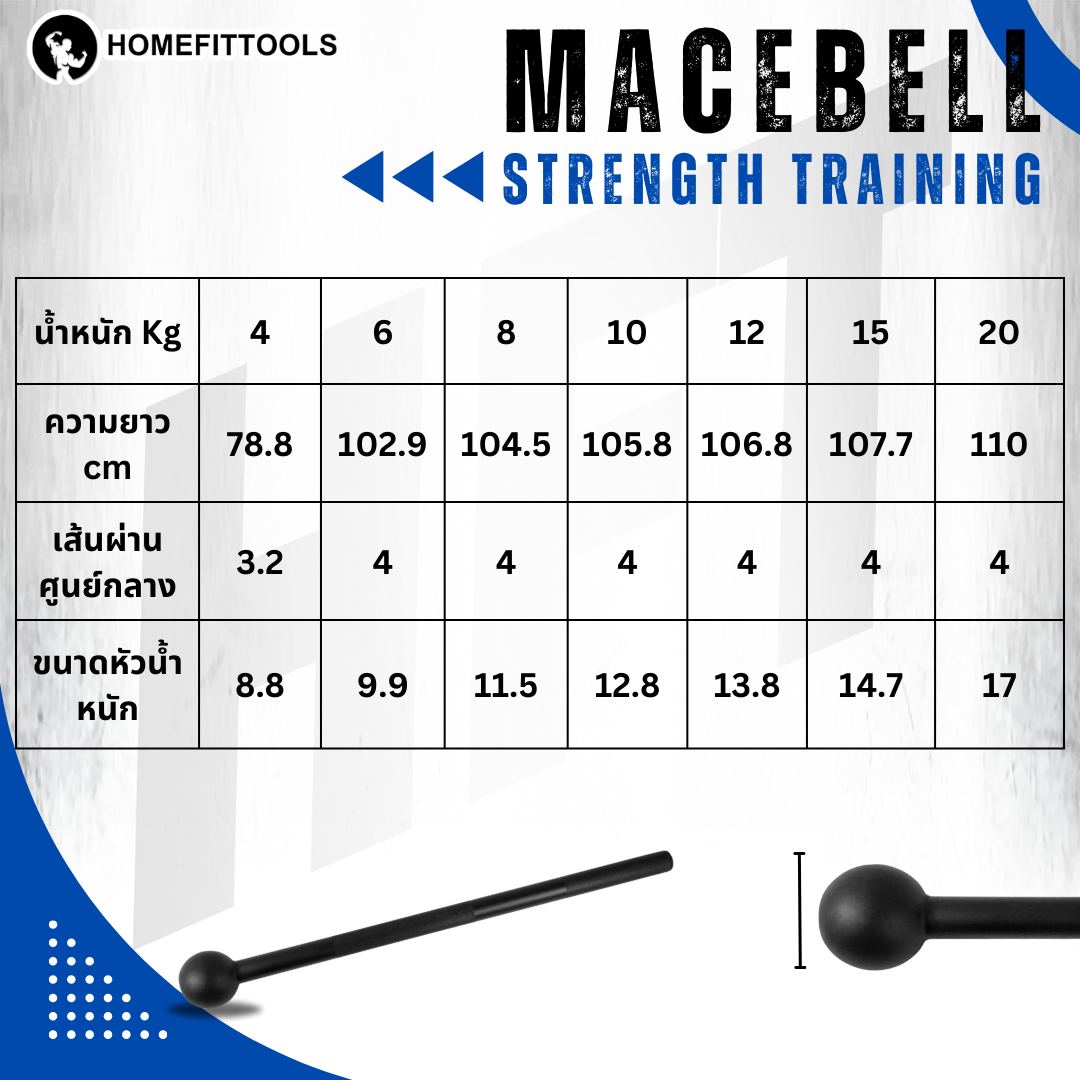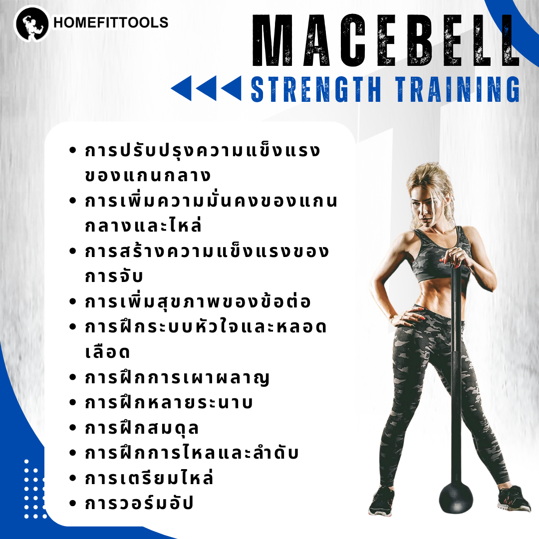 - เมซเบลน้ำหนักกระจายปลาย ช่วยเพิ่มแรงเหวี่ยง พัฒนากำลังแขน ไหล่ และแกนกลางลำตัว
