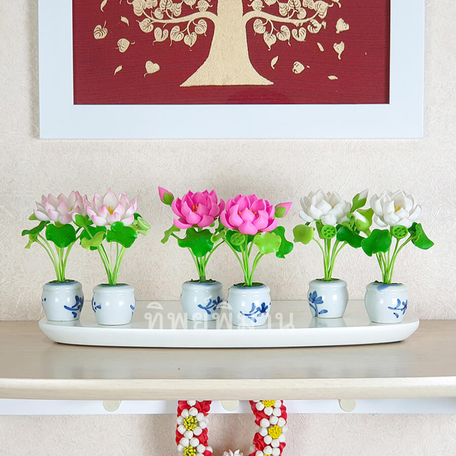 ชุดแจกันดอกบัวหลวงสีขาว Tippimaan งานแฮนด์เมดดอกบัวดินญี่ปุ่นปั้น 1คู่/ชุด