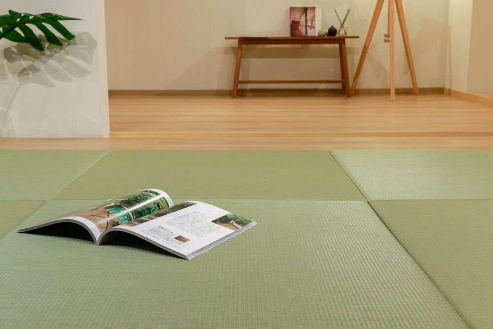 เสื่อทาทามิ MIGUSA TATAMI MESEKI GREENMigusa Tatami พื้น ทาทามิ นวัตกรรมใหม่ผลิตและพัฒนาโดย บริษัท เซกิซุย จำกัด ประเทศญี่ปุ่น ผ่านกระบวนการผลิตจากส่วนประกอบพลาสติกชั้นสูง เพื่อให้ความคงทน สวยงาม ดูแลรักษาง่าย และมีความปลอดภัยสูง เหมาะสมกับการใช้ชีวิตในปัจจุบัน และขณะเดียวกันยังคงสัมผัส และความรู้สึกเสมือนเสื่อทาทามิที่ทำจากหญ้าธรรมชาติ