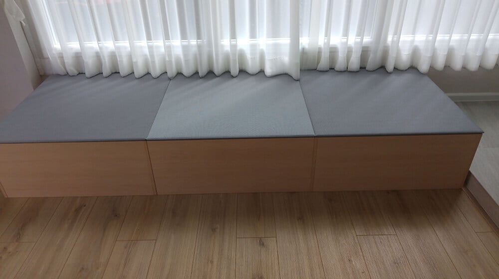 Migusa Tatami เป็นเสื่อสังเคราะห์ ทำจากเส้นพลาสติก+แคลเซียม ทอเป็นเสื่อ ด้านในมีบุ cushion ให้ความนิ่มเวลานั่ง ด้านล่างมีแผ่นกันลื่น ลูกค้าสามารถจัดวางหรือเคลื่อนย้ายได้ค่ะ