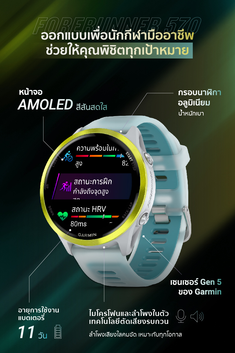 นาฬิกาสมาร์ทวอทช์ GARMIN FORERUNNER 570 หน้าปัด 42MM สี BONERSPBRYMANGO