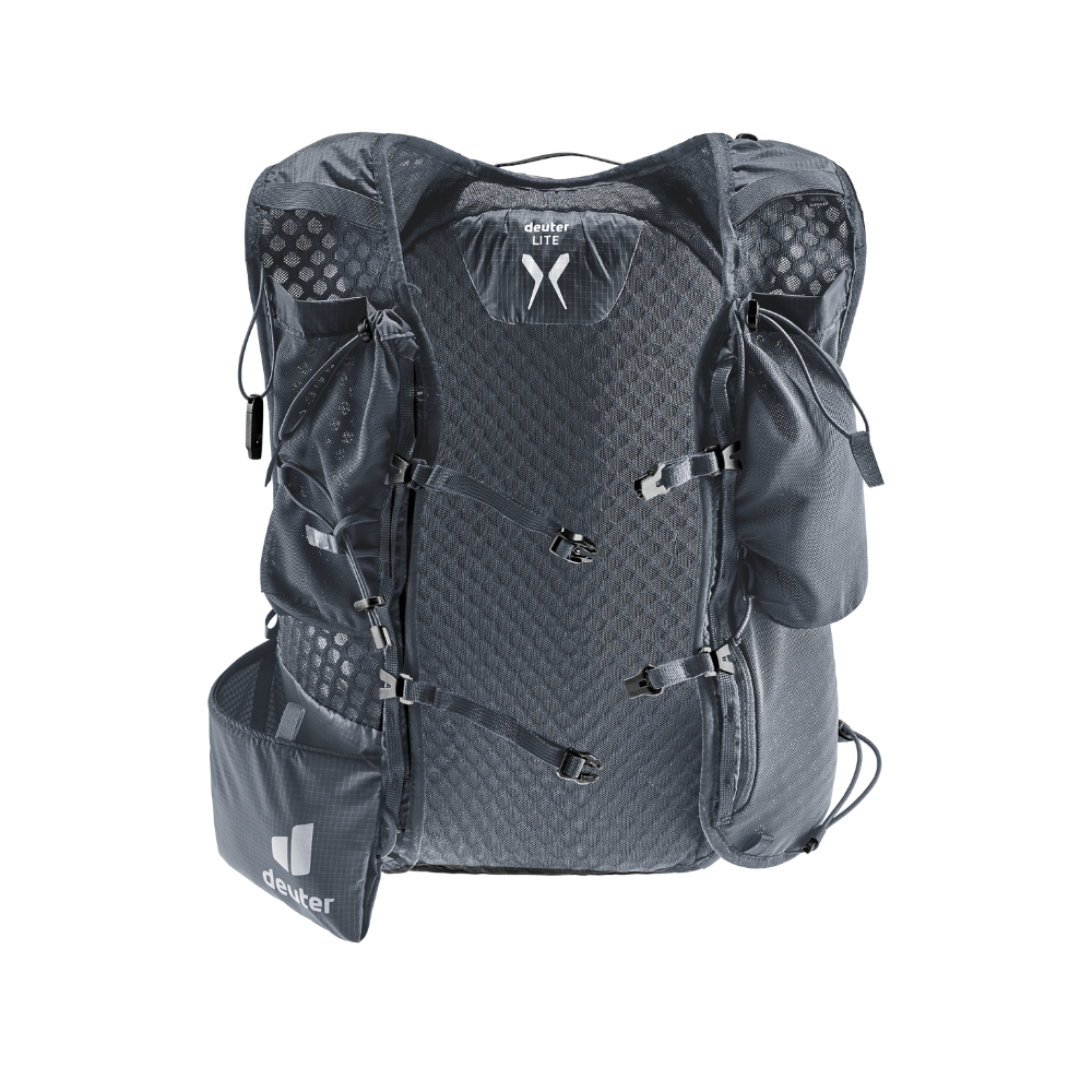 กระเป๋าวิ่งเทรล Deuter Ascender 7 - Blackมีน้ำหนักเบาเป็นพิเศษและสวมใส่สบายอย่างยิ่ง: สายสะพายแบบเวสท์ที่มีขนาดกว้างและออกแบบตามหลั สรีรศาสตร์ พร้อมระบบยืดหยุ่นในการบีบอัด, สายรัด sternum ที่สามารถปรับได้สองเส้น และวัสดุที่นุ่มสบายที่สัมผั กับหลัง ช่วยให้การสวมใส่รู้สึกเหมือนเสื้อผ้า. กระเป๋าในแบบตาข่ายยืดและสายรัดด้านข้างช่วยป้องกันการโยกของน้ำหนักไม่ว่าจะเผชิญกับพื้นที่ทุรกันดารแค่ไหน. กระเป๋าแบบโฮลสเตอร์ที่ติดอยู่ที่สายสะพายไหล่ข้างหนึ่งทำให้การเข้าถึงไม้ trekking แบบพับได้สะดวกและรวดเร็ว. และยังมีพื้นที่สำหรับฟลาสก์นุ่มและ GPS ในกระเป๋าที่ติดกับสายสะพายไหล่. ผ้าที่ใช้ทำตัวผลิตภัณฑ์นี้ทำจากวัสดุรีไซเคิล 100% และได้รับการรับรองจาก bluesign®. คุณสมบัติ