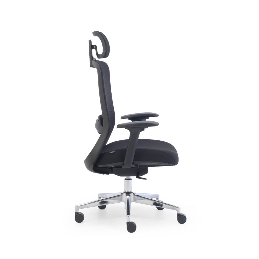 โครงเก้าอี้ : เบาะนั่งไม้วีเนียร์เพรสขึ้นรูปความหนา 12 มม. บุฟองน้ำ Polyurethane Foam [PU] ฉีดขึ้นรูป หุ้มด้วยผ้า พนักพิง : ทำจาก Molded Plastic ฉีดขึ้นรูป หุ้มด้วยผ้าตาข่ายไนล่อน Lumbar Support : พนักพิงทำจาก Molded Plastic ฉีดขึ้นรูป หุ้มด้วยผ้าตาข่าย ปรับระดับสูง-ต่ำได้ ตามสรีระของคนนั่ง หมอนรองศรีษะ : ทำจาก Molded Plastic [PP] ฉีดขึ้นรูป หุ้มด้วยผ้าตาข่ายไนล่อน ปรับเอียง และ ปรับความสูงได้ ท้าวแขน : ทําจาก Molded Plastic [PP] ฉีดขึ้นรูป และ ปรับ หมุนได้ ระบบ 4 D ส สามารถปรับระดับขึ้น-ลง เลื่อนหน้า-หลัง เลื่อนเข้า-ออก ระบบโยกเอน : Simple Synchronized Mechanism, แกนปรับความสูง, Backrest สามารถล็อคตำแหน่งได้ 4 ตำแหน่ง ปรับความหนืดพนักพิงตามน้ำหนักคนนั่งด้วยระบบสปริง โดยใช้มือหมุน การปรับสูง-ต่ำ : ปรับความสูงของเบาะนั่งได้ ด้วยระบบไฮโดรลิค [Gas lift] แกนเหล็กชุบโครเมี่ยม ขาเก้าอี้ : แบบ 5 แฉกทำจากเหล็กขึ้นรูป ชุบโครเมี่ยม ขนาด 350 มม. ล้อ : ลูกล้อแบบ Twin wheels castor ทำจาก Nylon / PU ขนาด 60 มม. แบบแกนเดือยเสียบถอดได้