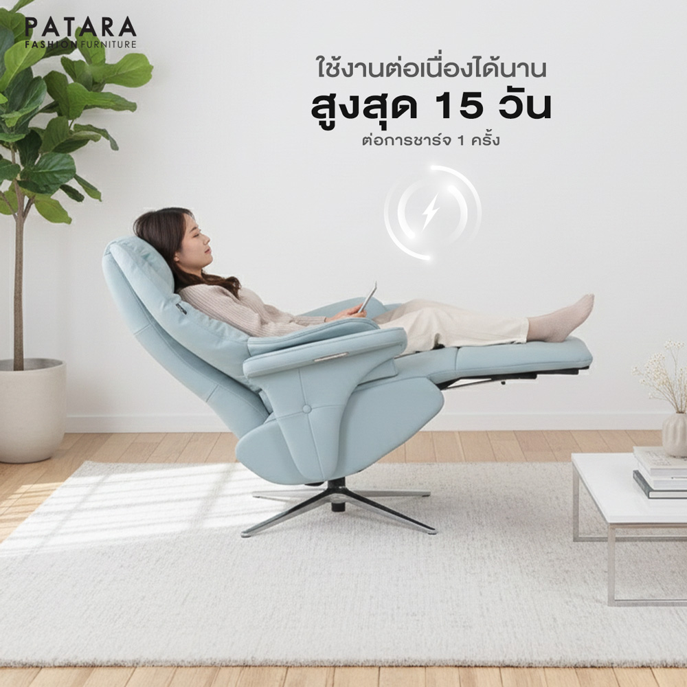 โซฟาปรับไฟฟ้าหนังแท้ PATARA รุ่น ZERO สีฟ้าขนาด : กว้าง 79 x ลึก 83-138 x สูง 110 ซม.