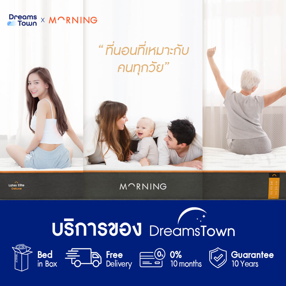 ที่นอนยางพาราแท้ เสริมพ็อกเก็ตสปริง 3.5ฟุต MORNING SLEEP LATEX ELITE PLUS หนา 10 นิ้ว💥 ซื้อที่นอน Morning Sleep รุ่น Latex Elite Deluxe ตอนนี้แถมฟรี!!! หมอนพรีเมียมมูลค่า 590.- 💥 - เมื่อซื่อที่นอน 3.5 ฟุต รับฟรี 1 ใบ - เมื่อซื่อที่นอน 5 ฟุต และ 6 ฟุต รับฟรี 2 ใบ ----------------------------------------------