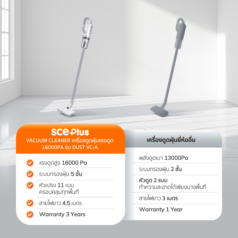 เครื่องดูดฝุ่นแบบด้าม ALECTRIC รุ่น VC-A สีเทาAlectric Vacuum Cleaner เครื่องดูดฝุ่นแรงดูด 16000pa รุ่น Dust VC-A - รับประกัน 3 ปี เครื่องดูดฝุ่นแรงดูดสูง ด้วยแรงดูด 16000 Pa ช่วยให้การทำความสะอาดบ้านเป็นเรื่องง่าย ตัวเครื่องมีน้ำหนักเบา คุณภาพดีและแข็งแรงทนทาน มาพร้อมกับหัวดูด 11 หัวดูด สามารถตอบโจทย์การทำความสะอาดในทุกพื้นที่