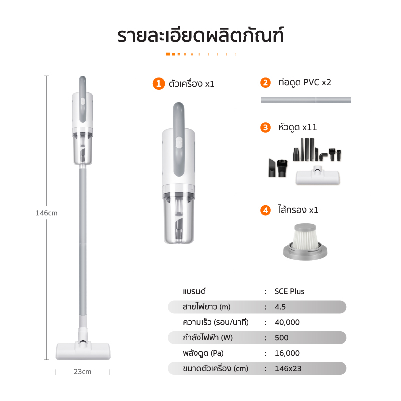 - ครบครันด้วยหัวดูด 11 แบบ รองรับทุกการใช้งาน ทั้งพื้นแข็ง พรม เบาะรถยนต์ ซอกมุม และพื้นที่ยากเข้าถึง