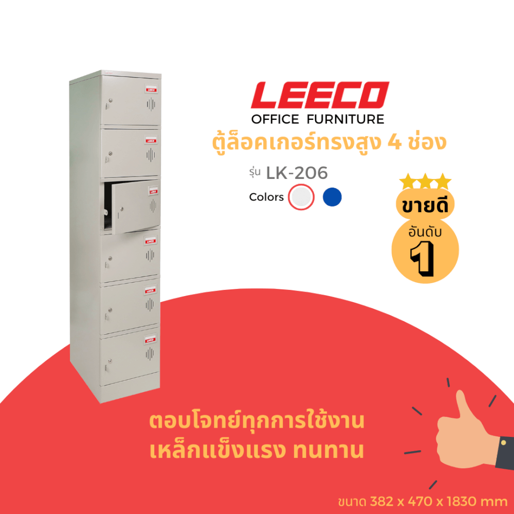ตู้ล็อคเกอร์ 6 ช่อง LEECO LK-206 เทาอ่อน👉 รุ่น LK 206 👉 6 บานประตู