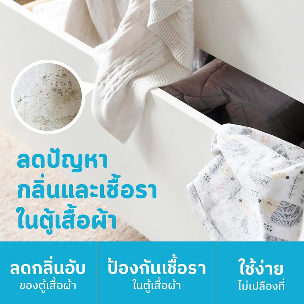 - แผ่นบาง แขวนหรือวางได้ ไม่เปลืองที่ / 1 แพ็ค บรรจุแผ่นลดความชื้น จำนวน 5 แผ่น