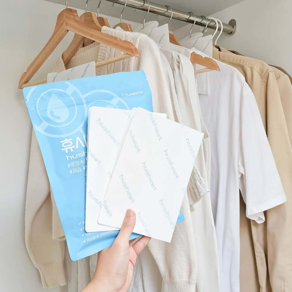 แผ่นลดกลิ่นอับสำหรับตู้เสื้อผ้า HUSHEET กันความชื้น นำเข้าจากเกาหลี (6 แพ็ค แถม 1)