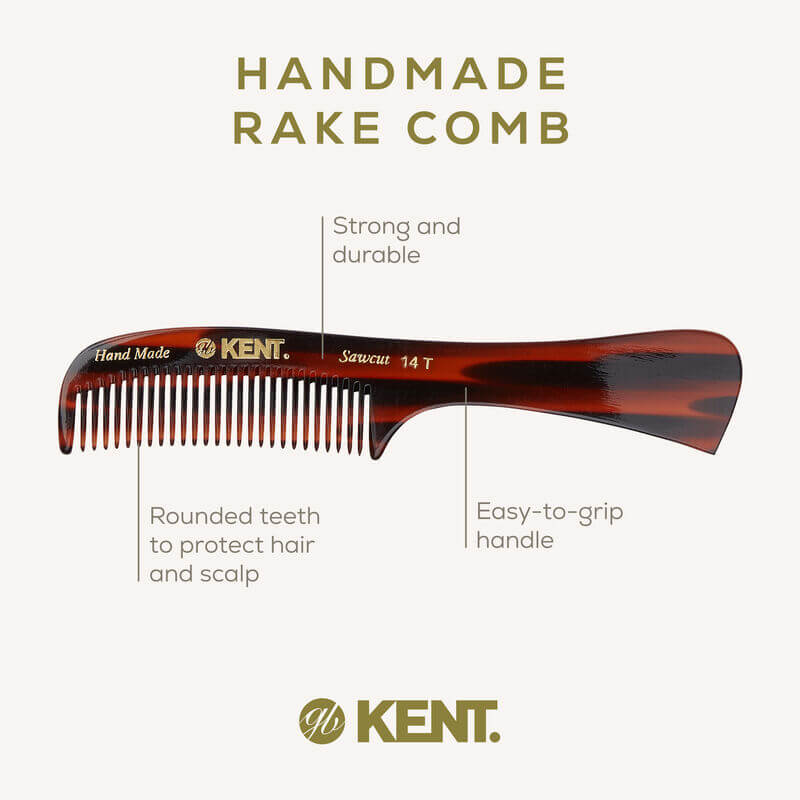 หวีด้าม KENT รุ่น 14T RAKE COMB – หวีซี่ห่างแฮนด์เมด จาก อะซีเตต ขนาด 17 ซม