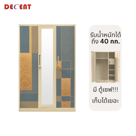 ตู้เสื้อผ้าเหล็ก บานเปิด 3 ประตู DECENT ลาย แพทเทิร์น123 120ซม.