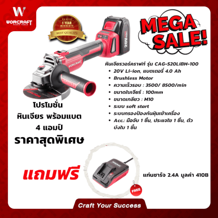 เครื่องเจียรไร้สาย WORCRAFT รุ่น CAG-S20LIBH-100เครื่องเจียรไร้สาย รุ่น CAG-S20LiBH-100
