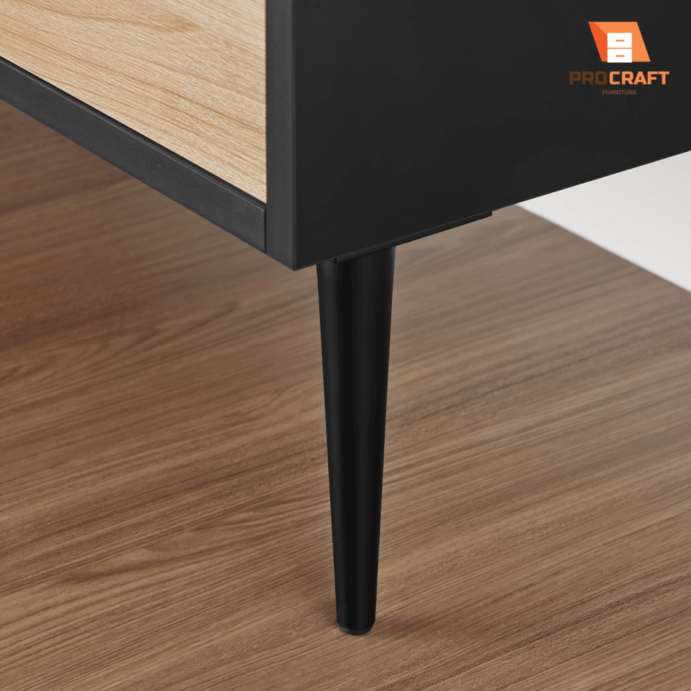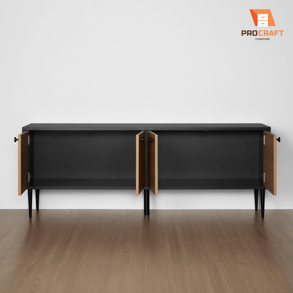 ตู้เก็บของ PROCRAFT รุ่น MASON โมเดล C13 ขนาด 160*40*60 CM สีดำและลายไม้ตู้เก็บของรุ่น Mason ดีไซน์โมเดิร์น ออกแบบฟังก์ชันการจัดเก็บที่ตอบโจทย์ทุกไลฟ์สไตล์ ช่วยให้พื้นที่ของคุณเป็นระเบียบและใช้งานสะดวกตู้ประกอบด้วยบานเปิด 4 บาน พร้อมช่องเก็บของขนาดใหญ่ภายใต้หน้าบานผลิตด้วยเครื่องจักรเยอรมันความแม่นยำสูง โครงสร้างทำจากไม้ปาร์ติเกิลบอร์ดคุณภาพสูง Grade E1 ปิดผิวด้วยเมลามีนทนทาน พร้อมบานพับระบบ Soft Close ให้สัมผัสการปิดที่เงียบและนุ่มนวล