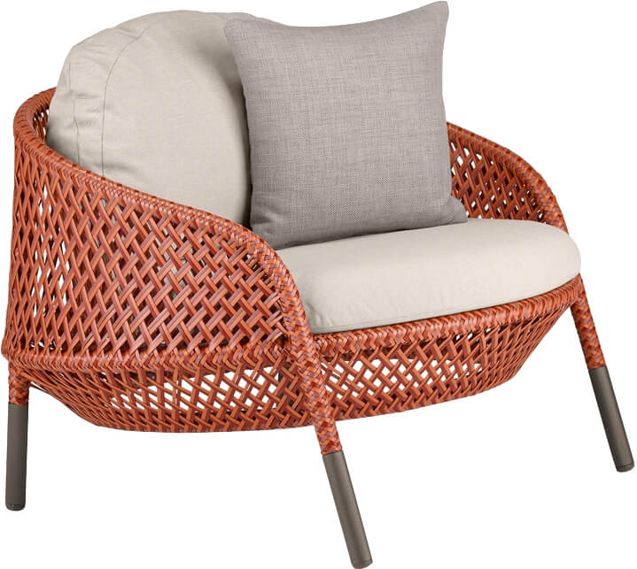 สี โครงหวายเทียมสีส้มแดง (ออกแนวอิฐ) หมอนรองนั่งและพิงสีเทาอ่อน